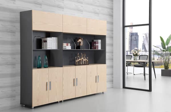 ארון מדפים הכולל דלתות, שני תאים לקלסרים וקסקט 28 ממ'